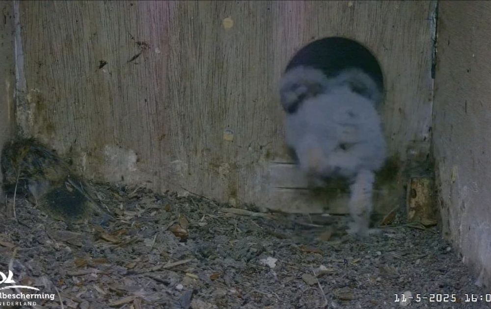 En jahoor, het is de familie steenuil weer gelukt, bij deze kast hangen 3 (!!) camera’s en op dit moment is het kuiken bijna totaal buiten het beeld. Wat moeder met het eitjes leggen en broeden voor elkaar gekregen heeft, zet het kuiken zelf voort: het uit de schijnwerpers willen blijven zodra het kan. Zoals de headerfoto al laat zien en het filmpje ook, het kuiken zit in de sluis!