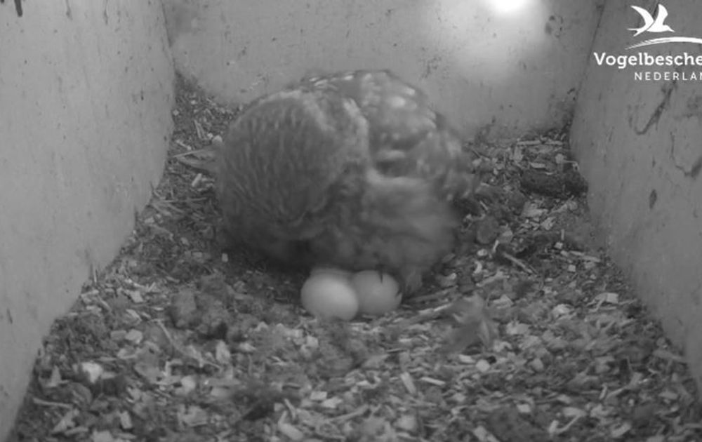 Bij terugkeer op de eieren neemt het vrouwtje de broedpositie weer in en zien we haar even met de haar lichaam schudden (in jargon van BdL-kijkers: "schuddelen"). Hierdoor maakt ze goed contact tussen de broedvlek en de eieren, en zet ze zich in een comfortabele houding op de eieren. Om vervolgens weer duttend de tijd door te komen. Op het filmpje "Eieren keren" (23 april) is het ei-draaien en het schuddelen fraai te zien.