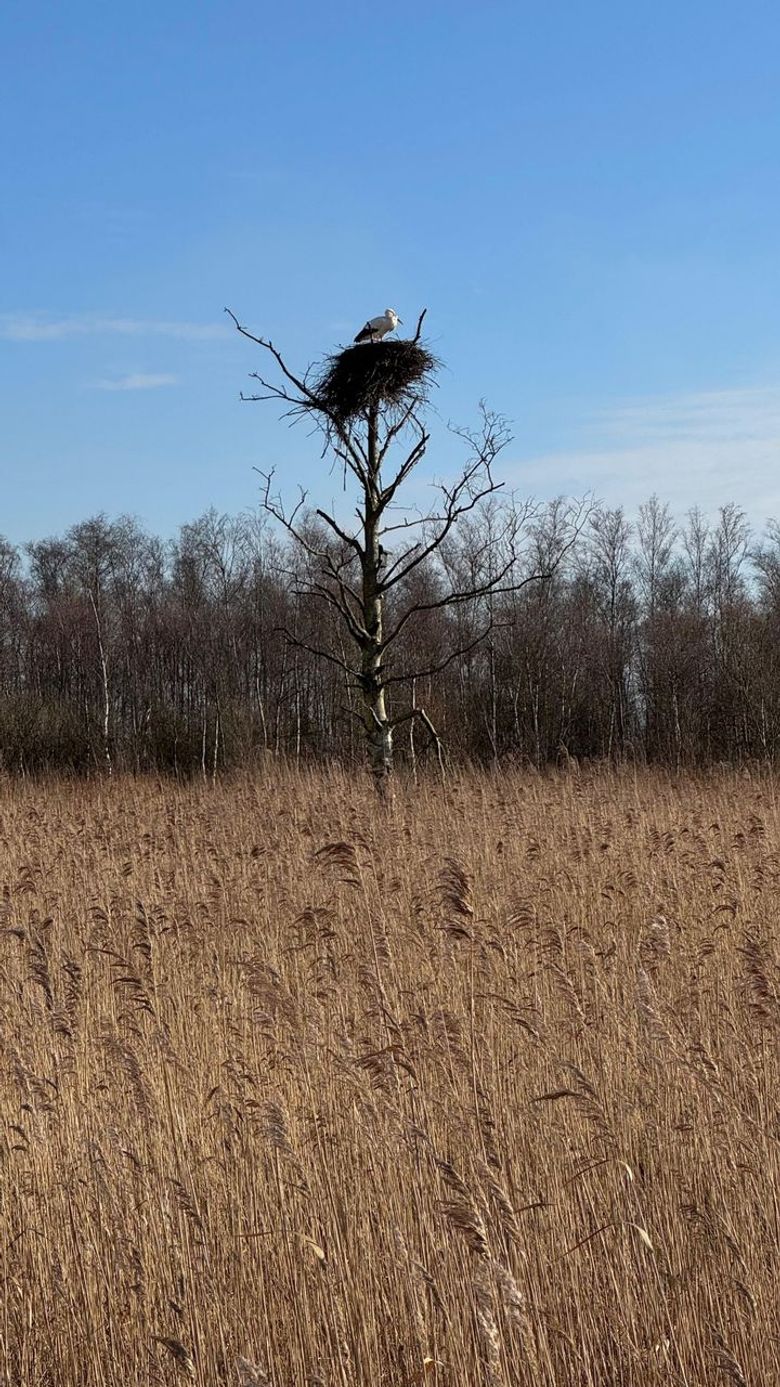 De eerste dagen na terugkeer was Pa ooievaar vaak op zijn boomnest te zien. Maar nu is hij juist veel weg. Er kunnen nog steeds ooievaars terugkomen uit het zuiden. Pa is zelf weleens pas op 10 maart teruggekeerd en de eerste man kwam altijd nog later in maart terug. Dus misschien is ze nog onderweg. Maar het kan ook zijn dat Pa ‘in het veld’ probeert een andere vrouw te versieren en die te verleiden met hem mee te komen. Dan kan hij haar laten kiezen uit twee nesten: hoe stoer is dat!