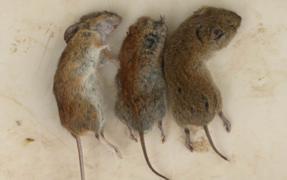 de favoriete muizentopdrie in de Achterhoek, met vlnr: bosmuis, rosse woelmuis, veldmuis