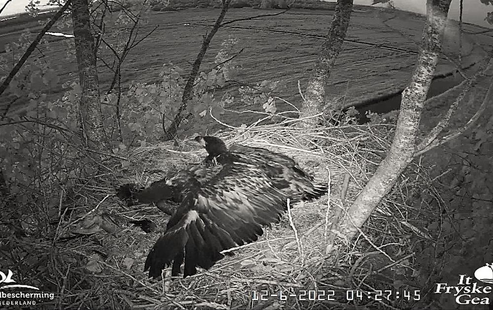 Op 30 april ‘22 bracht man zeearend zijn eerste forse paling naar het nest. Maar vrouw zeearend bleef niet achter en bracht op 10 mei eveneens een, zij het middelgrote, paling. Echter, onze man zeearend lijkt toch de echte specialist te zijn en bracht op 4, 5 en 10 juni telkens een meer dan forse paling.