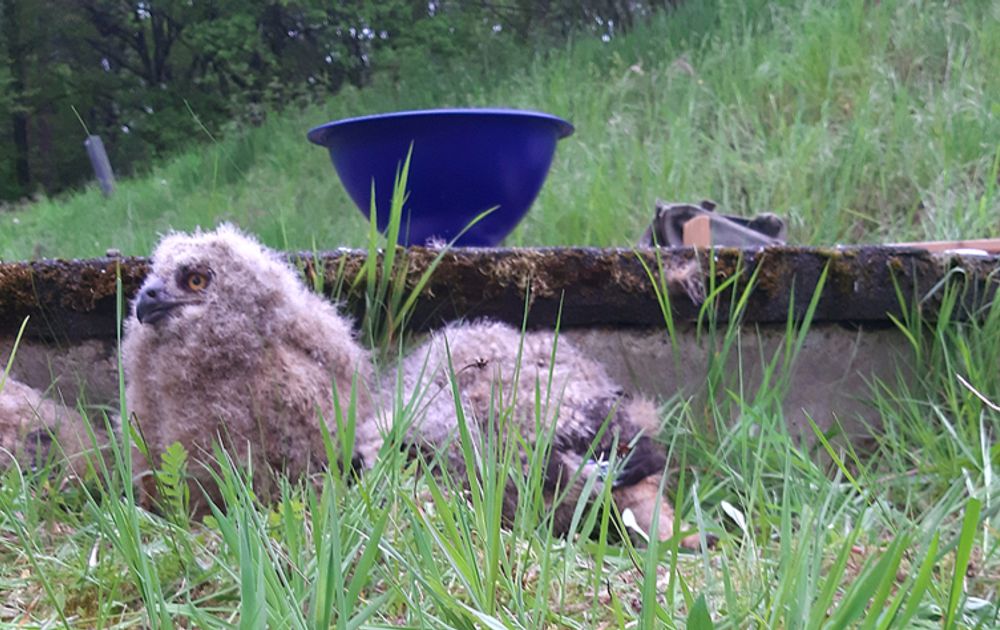 De jonge oehoetjes werden door 1 persoon via een ladder uit het nest gehaald. In een grote boodschappentas werden ze meegenomen ver buiten het bos alwaar de nodige media stond te wachten. Van al die aandacht hebben de volwassen uilen niets meegekregen. Mevrouw oehoe vloog namelijk weg toen we aankwamen.