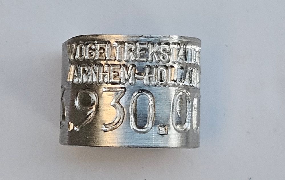 Omdat het een bijzonder jong is, krijgt het uiteraard ook een bijzondere ring om. En wel de eerste van de nieuwe serie van het seizoen: 3.930.001. Deze serie zal tot in de lengte van dagen de boekjes ingaan als de serie waarin Pet en Snor hun 40ste broedseizoen beleefden! (Daarover later meer.)