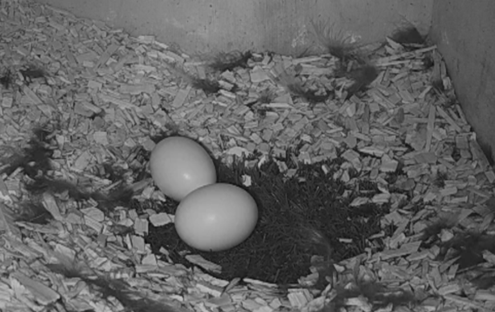 Zo is ze dit jaar na het leggen van het eerste ei (op 6 februari) wat langer en vaker uit de kast geweest dan na het leggen van het tweede ei (op 9 februari). Ze maakt nu per nacht gemiddeld 2 uitstapjes van een minuut of 10 om even haar ontlasting buiten de kast te droppen, haar vleugels te strekken en soms ook een prooi van het mannetje te ontvangen.