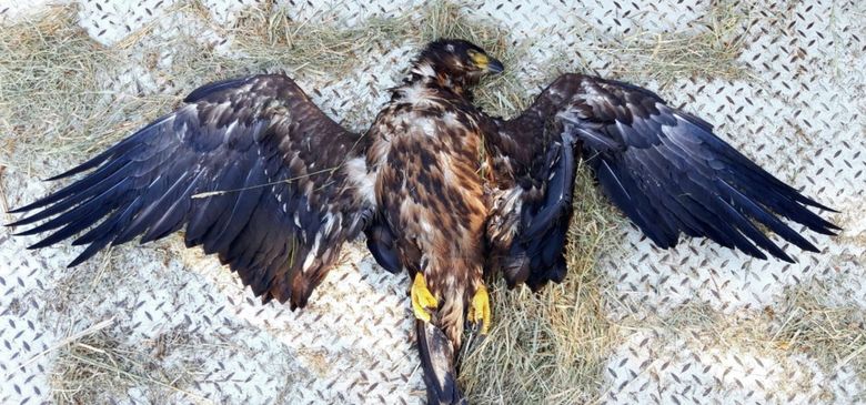Het dier (een vrouw) was in goede conditie, met een normale hoeveelheid onderhuids vet, een gewicht van 4.700 gram en de spanwijdte van de vleugels bedroeg 224,5 cm. Ze had een lege krop, maar een gevulde maag bestaande uit 70% gans en 30% karper/vis.