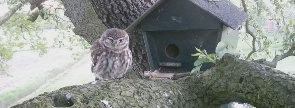 Vandaag overdag heeft man de kast enkele malen bezocht en tegen 18:00 uur kwam hij eindelijk weer met een prooi! Dat is goed nieuws en natuurlijk hopen we dat hij inmiddels voldoende is hersteld om vannacht weer voor zijn vrouw op jacht te gaan.