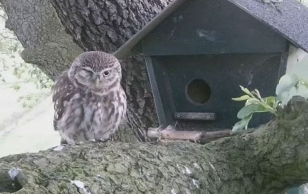 Nog even terugkomend op de uil die zaterdagavond als een standbeeld op de tak zat: was dat misschien toch wel onze man? Het feit dat die uil zo stil op de tak zat, spoort wel met het gedrag van man op zondagochtend. Helaas konden we zijn ogen niet zien, maar als ik de beelden goed bekijk meen ik te zien - als hij van links naar rechts kijkt in minuut 0:48-0:49 in het clipje - dat zijn linker oog normaal open is en zijn rechteroog dichtgeknepen is.