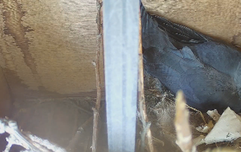 Naast de marter hadden de kauwen nog ander bezoek, namelijk van soortgenoten. Een vreemde kauw drong de kast binnen en stort zich op vrouw. Het gaat er best heftig aan toe en men vreesde voor de eitjes. Gelukkig komen ze heelschaals uit het gevecht tevoorschijn. Snappen ze dan niet dat er genoeg ruimte is voor 2 vrouwen? Schijnbaar niet. Ondertussen probeert man de rust te bewaren met nestmateriaal en lekkere hapjes. Hopelijk komen er niet nog veel meer bezoeken, een beetje rust is ons paartje nu wel gegund!
