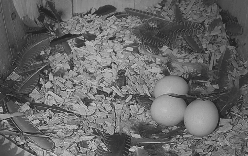 Op de chat wordt er druk over gespeculeerd. Zou dit het zijn? Zal er nog een vierde ei komen? Het zou zomaar kunnen! In tijden van voedselschaarste bestaat een legsel soms maar uit 1 of 2 eieren. Maar in tijden van overvloed kan het zomaar zo zijn dat een legsel uit wel 6 eieren bestaat. We hebben in ieder geval al 3 eieren! jeej :)
