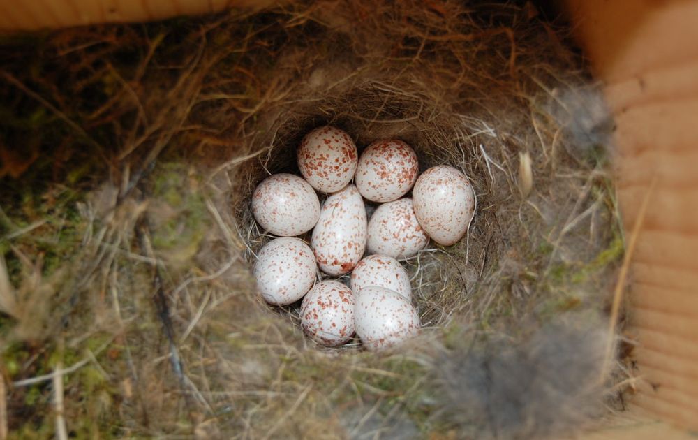 Een nest met koolmeeseieren (Lysanne Snijders)