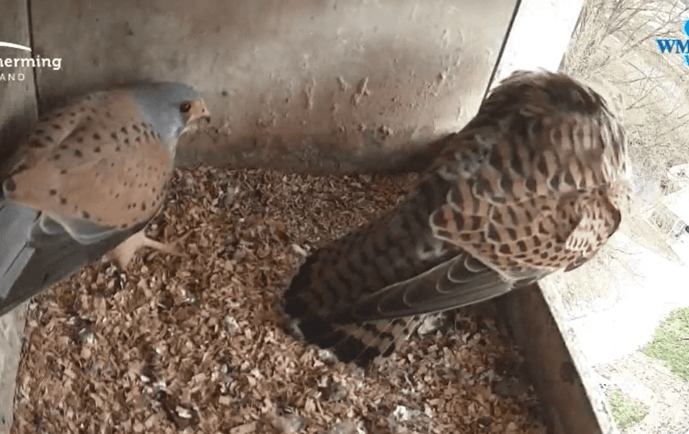 Toen de camera’s inschakelde keken we naar een hecht ogend torenvalkpaartje dat zelfs samen in de kast sliep. Na een paar dagen bleek echter dat het allemaal niet zo simpel was: er heerste chaos en er bleken meerdere mannetjes in het spel te zijn die een plekje in de watertoren hoopte te bemachtigen. De vrouw des huizes had het voor het uitkiezen! Uiteindelijk heeft ze een nieuwe man als partner uitgekozen die, na aanvankelijk wat aarzeling, zich flink uitsloofde voor het vrouwtje. De volgende fase kon beginnen en vrouw legde maar liefst zes eieren.