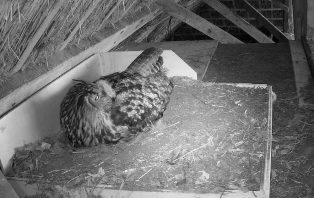 donkere nest, wel zo handig als je als broedgrage uil niet boven op je eieren
