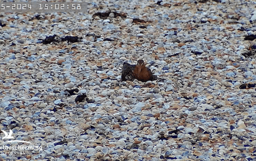 Ondanks de aanhoudende onrust door buurman/buurvrouw kievit van vorige week, is het de grutto toch gelukt om in ieder geval het eerste ei uit te broeden. Zo rond 15:00 vanmiddag was het eerste kuiken te zien, dat nog even uit moest vinden wat boven en onder was. Kort daarna werden de trouwe webcamkijkers getrakteerd op prachtige camerabeelden, van een grutto die wegvliegt met de eierschaal. Vanaf nu kunnen we, kort maar krachtig zoals we gewend zijn van de boerenlandvogels, genieten van de beelden van het kuikentje/de andere kuikens die binnenkort uitkomen. Met pootjes en kopjes die overal onder het ouderdier vandaan steken.