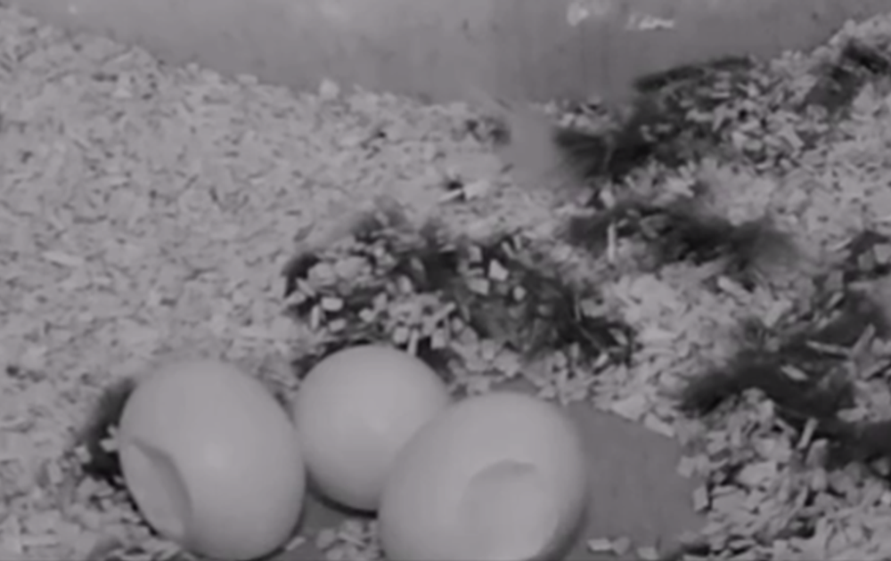 Het is vanaf de camera lastig te zien of de deuken ook de schaal beschadigd hebben. De deuken in de twee eieren maken ons natuurlijk ongerust over het derde ei. Maar de hoop blijft dat het ene ei sterk genoeg is. De tijd zal het leren. Wat betreft de andere eieren is het afwachten, maar het ziet er niet goed uit. We weten het pas zeker zodra we de eieren kunnen bekijken, dat kan tijdens het ringen. Als er natuurlijk nog eieren uit komen.