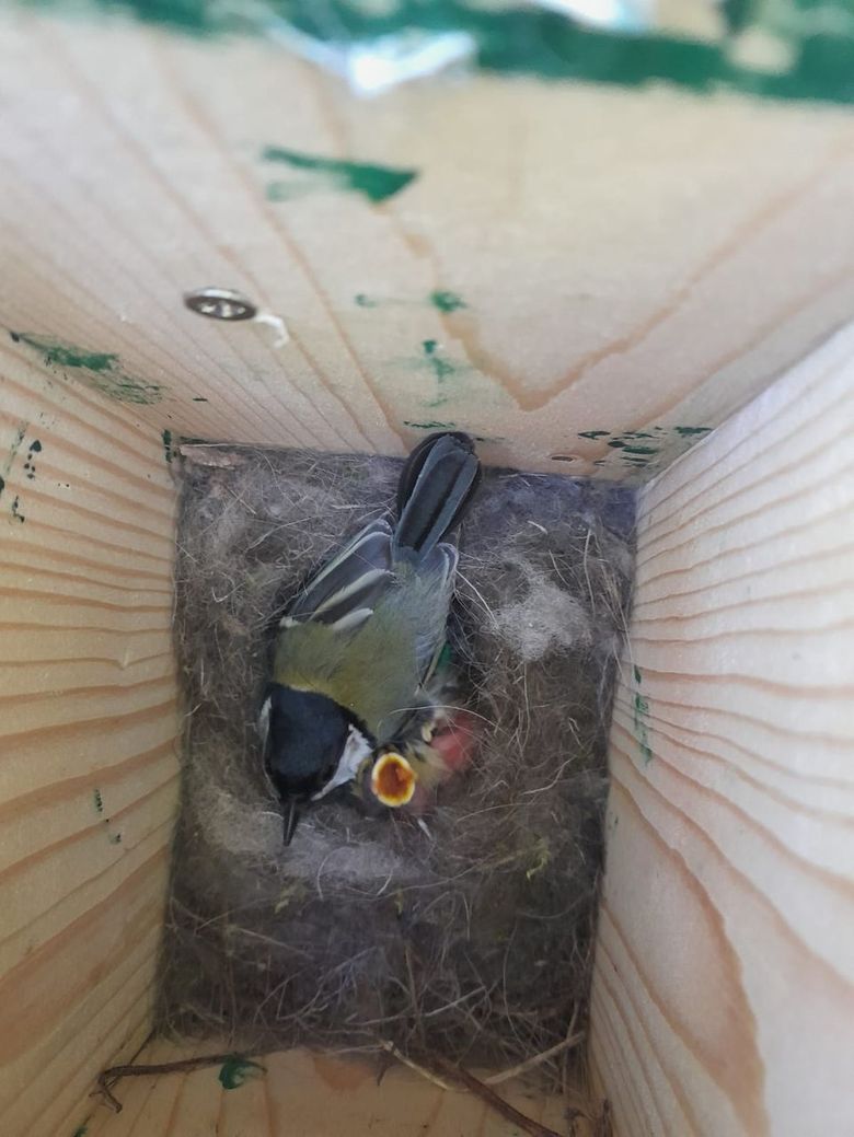 26.04.26 Vrouw koolmees zit sinds nu ongeveer een week op haar broedsel. Ze wast zich en gaat ..
