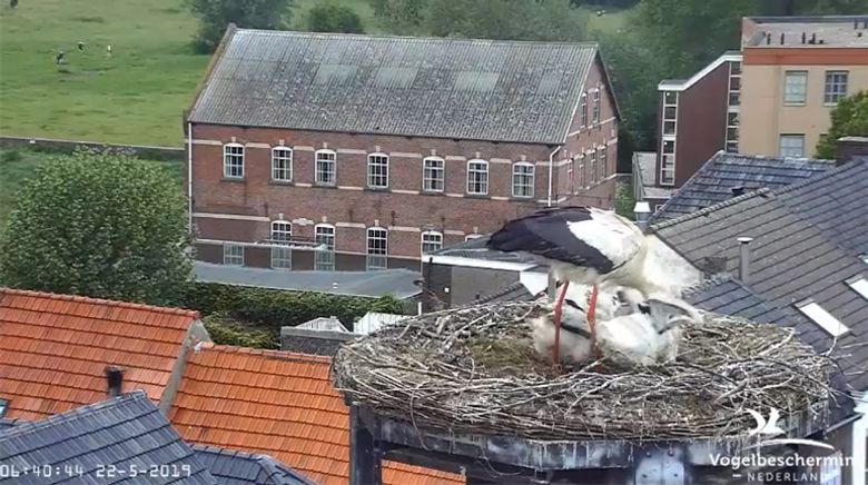 Dat deed me denken aan de drie jonge ooievaars op het nest. Die kennen ook helemaal geen fatsoen. Als er eten komt, dan doe ze hun best om zoveel mogelijk te verorberen. Een beetje rekening houden met de nestgenoten is er niet bij. Die zorgen zelf maar dat ze iets krijgen.