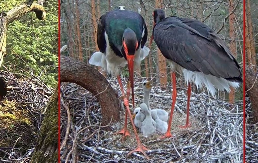 Toen ik voor het eerst las over de zwarte ooievaar, dacht ik bij hun kuikens aan zwarte donsbolletjes. Maar nee, ze bij hun geboorte ook wit! Alleen de snavel is geel, waar die van jonge witte ooievaars zwart is. Na het uitvliegen gaat de snavel van beide soorten langzaam rood kleuren, net als de poten. Na één jaar hebben zowel de witte als zwarte ooievaar hetzelfde uiterlijk als de oudervogel.