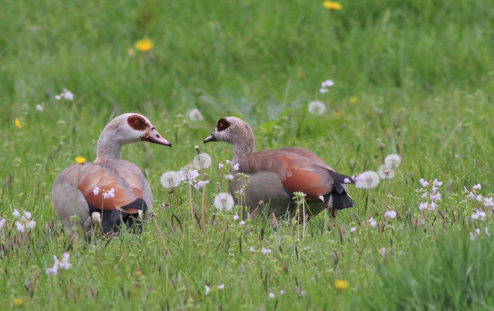 De hoop is nu gevestigd op een exotisch stel. Nijlganzen hebben de lege horst ontdekt en er werd met de borst al een nest-kom gevormd. De Afrikaanse gans is eigenlijk een eendachtige, verwant aan de bergeend. De ontsnapte siervogel heeft zich ook in ons land gevestigd. Ze keken in 2018 ook al eens om de hoek bij het camnest, maar werden verjaagd door de havik. Het gebeurt meestal eerder andersom. De nijlgans is een agressieve ‘eend’ en kan de havik of buizerd zo van het nest beuken en er zelf plaats opnemen. We wachten het af beste mensen. Genoeg gekletst, het is weer tijd om verder te klepelen. Pitrus, pitrus, pitrus…