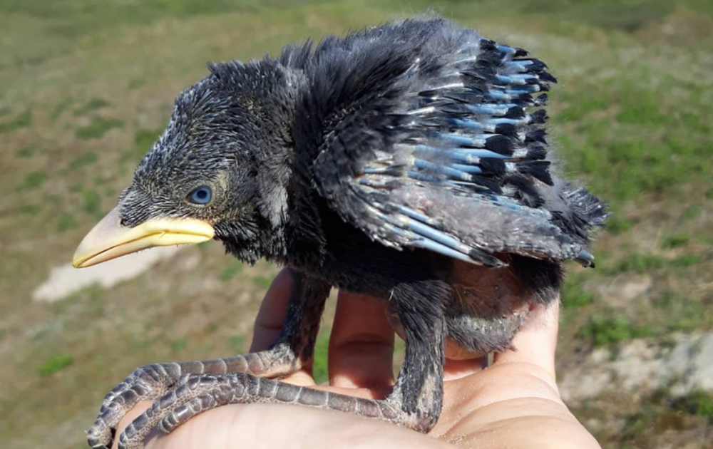 Een kauw die ik tijdens ecologisch onderzoek in een konijnenhol heb gevonden.