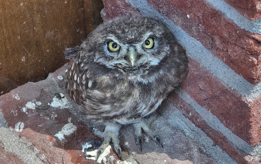 Een van de jonge steenuilen had zich vastgevlogen in de aan de voorkant open schuur. Het dier was geschrokken toen Jan onverwachts de schuur binnenkwam en probeerde vervolgens via het raam in aanbouw naar buiten te vliegen. Wat het niet zag was dat er plaat plexiglas voorstond waar het vervolgens tegenaan knalde. Dat liep goed af, maar wel was hij in een soort van dakloze gevangenis beland. De ruimte was zo smal dat het uitslaan van de vleugels niet goed mogelijk was. Jan was bang dat hij er op eigen kracht niet meer uit zou kunnen en belde ons.
