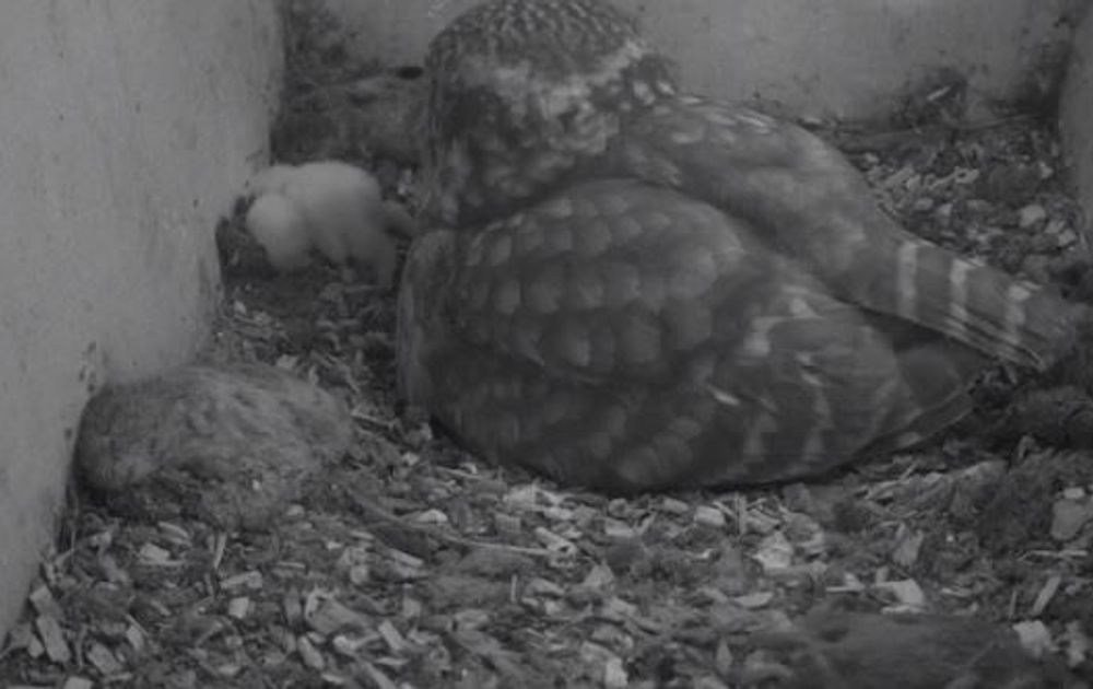 Op dit moment, donderdagavond, zien we dat het dode jong door het vrouwtje buiten de nestkom is gelegd, te midden van de prooien die moeder en haar kroost omringen. Het lijkt voor ons kijkers hard, maar dit is zoals het gaat bij steenuilen (en veel andere vogelsoorten). Om een dood jong wordt niet getreurd. Het leven gaat door en dat betekent: het voeden van de andere drie jongen.