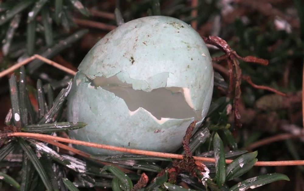 De vrouwtjes produceren een enkel legsel per jaar, maar een verloren legsel kan worden vervangen. De eieren zijn licht groenachtig blauw van kleur zoals te zien is op bijgaande foto van een uitgekomen ei dat op 3 maart in Frankendael onder een nest in een ceder werd gevonden.
