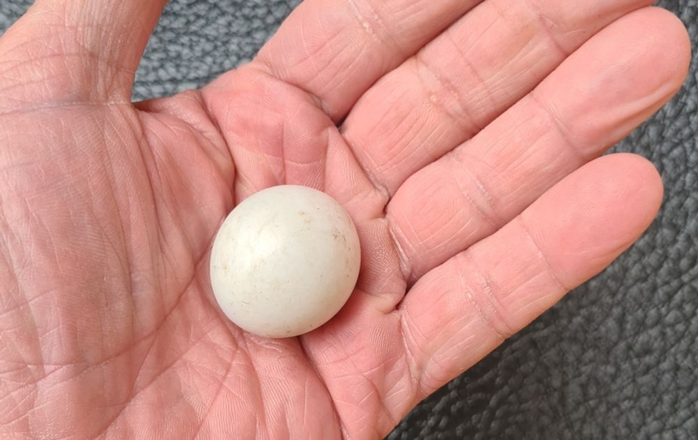 Dat doet me denken aan die keer dat we in een nestkast een min of meer voor steenuilen normaal formaat ei aantroffen en een soort van reuzenei. Beide koud. We snapten er geen jota van. Hoe kon een steenuilenvrouw nu op zo’n ei broeden? Over de vraag hoe ze zo’n ei had kunnen leggen, lieten we onze gedachten maar helemaal niet gaan. We zagen al allerlei gynaecologische ingrepen voor ons die ons de rillingen over de rug deden lopen. De afmetingen van het reuzenei bleken verrassend goed overeen te komen met die van een kippenei. Maar ons kwartje viel nog niet. Dat gebeurde pas toen we een foto van beide eieren naar inmiddels wijlen steenuilenonderzoeker en dierenarts Peter Beersma stuurden. Die wees ons fijntjes op de kleine putjes in het reuzenei. Vier stuks, twee op gelijke afstand boven en twee een paar centimeter daaronder. Zijn conclusie: een kippenei. In het nest gedropt door een steenmarter. Daarmee kwam een eind aan dromen over krantenkoppen die ons onsterfelijk beroemd zouden maken.