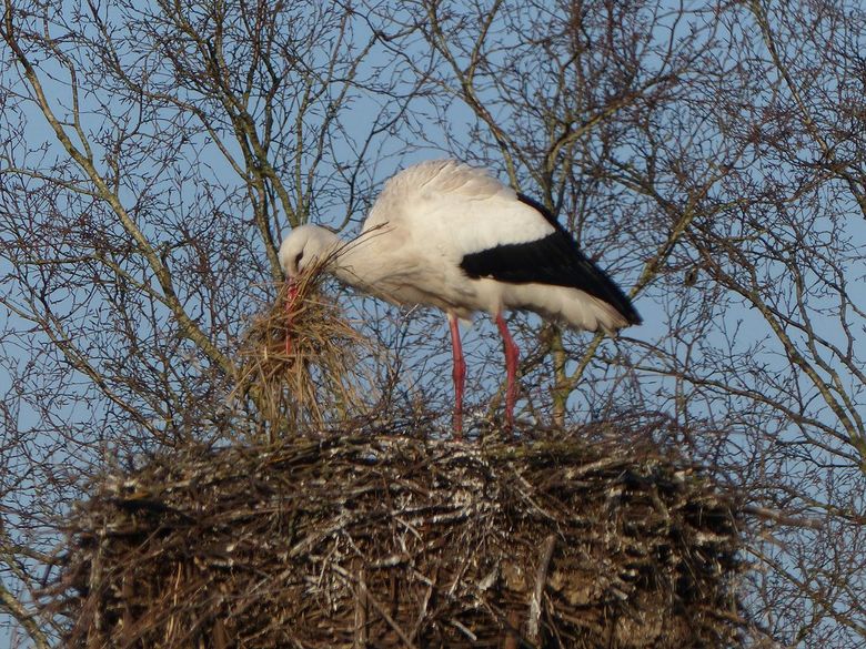 Ook bij mij op het nest wordt volop zacht materiaal gebracht. En soms wordt er ook materiaal verwijderd. Nee, niet door de eigenaren van het nest, maar door een brutale buurman of -vrouw. Als het nest even leeg is omdat beide vogels ergens in de buurt voedsel zoeken, strijkt er een vreemde neer. Na wat gerommel in het nest vliegt de dief snel weer weg met een pluk stro of gras. Vast heel tevreden, want het gras bij de buren is altijd groener, toch?