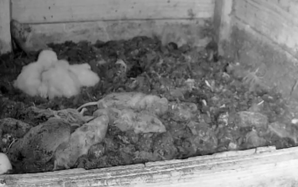Hoe klein ze ook zijn de hoeveelheid eten die er nu al in verdwijnt is indrukwekkend. Gelukkig heeft M dit signaal luid en duidelijk doorgekregen en de prooiaanvoer flink opgeschroefd. Een mooie start voor dit prachtige vijftal (ik ga er voor het gemak maar even van uit dat K5 zich ook gaat melden). Deze fase levert ook bijzonder mooie beelden op; bijvoorbeeld als het voedertijd is, zoals in deze clip waar je echt even de tijd voor moet nemen.