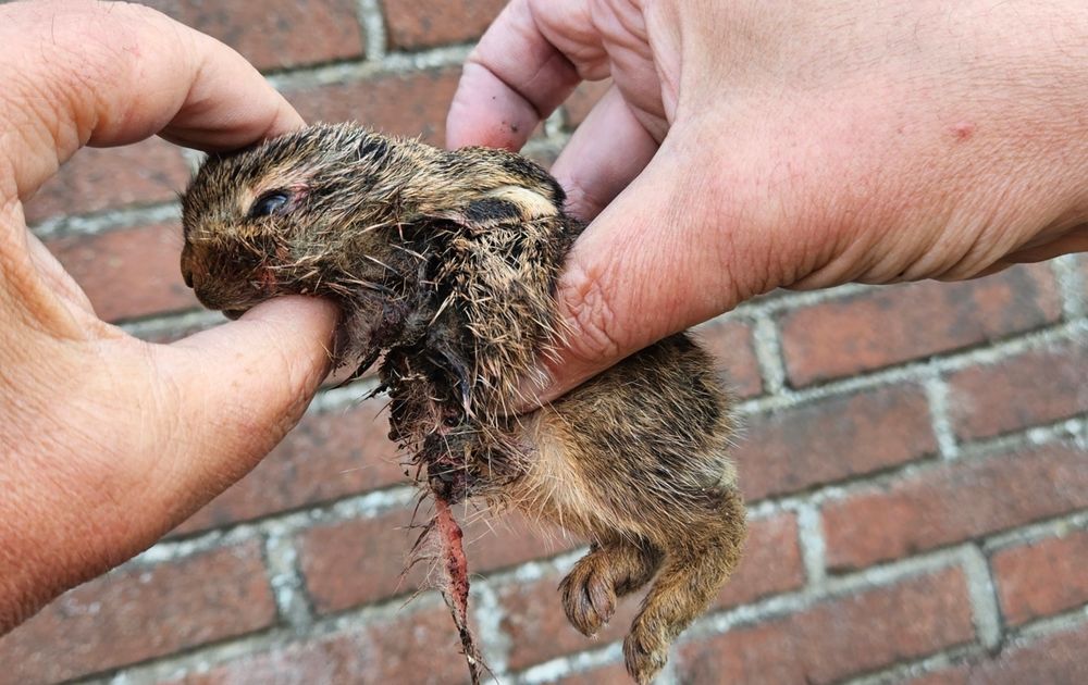 Voor steenuilen is een haas, ook al is het nog een jong dier, een wel heel forse prooi. Zelfs het naar de nestkast brengen is al een hele toer. Waarschijnlijk zijn de haasjes het slachtoffer geworden van het maaien van de weilanden rondom de boerderij. In plaats van weg te rennen om aan de maaibalk te ontsnappen, drukken jonge hazen zich instinctief plat tegen de grond. Misschien effectief als het om een vos gaat die op zoek is naar prooi, maar niet als er een ´reusachtige´ maaimachine op je afkomt. Soms gaat het goed, maar soms ook gaat het mis.