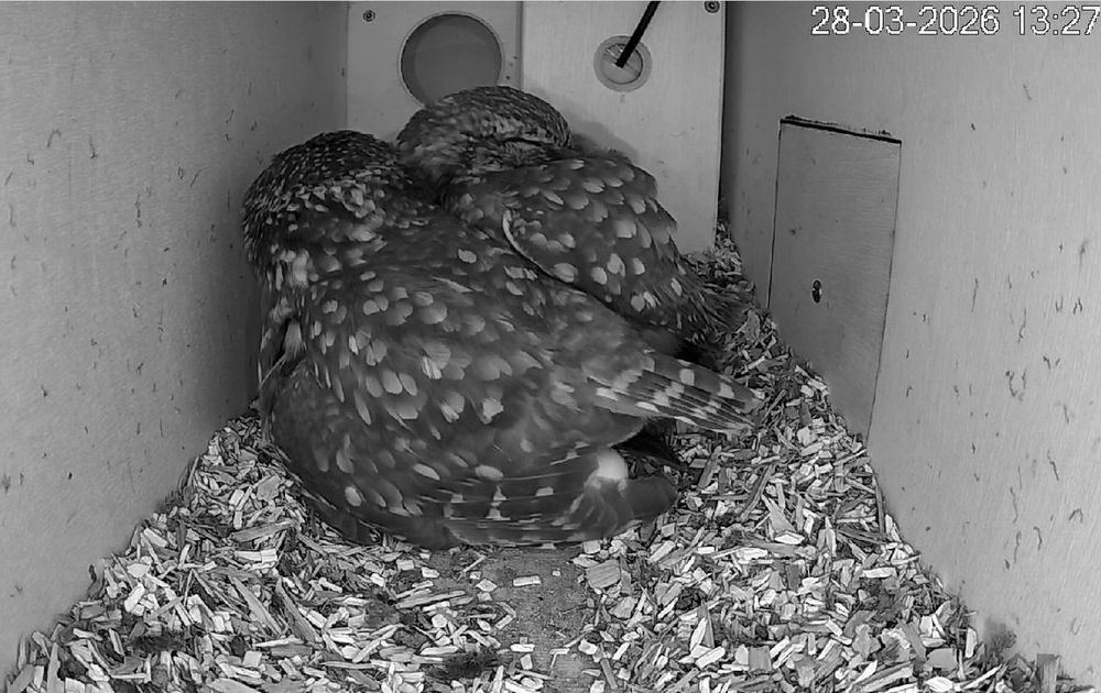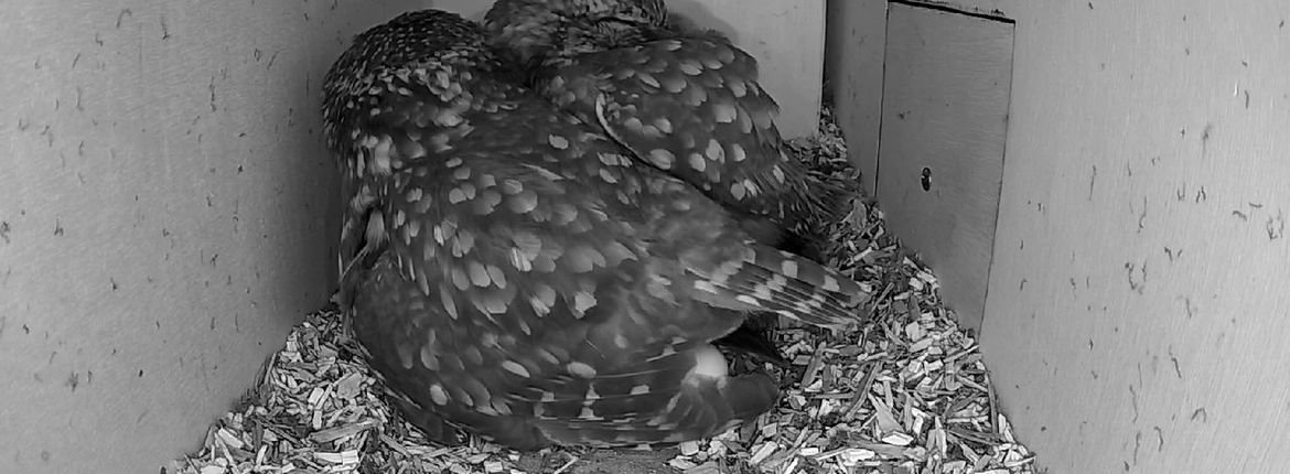 Kijkers die voor het eerst naar de steenuilen kijken, hebben zich er misschien over verbaasd dat het vrouwtje afgelopen avond en nacht als vanouds de kast verliet en niet op het ei ging broeden. Het lag er moederziel alleen. Wees gerust, dat is bij steenuilen volkomen normaal. Ze beginnen pas echt serieus te broeden als het legsel compleet is. Waarom dat zo is, bewaar ik voor een volgend blog.