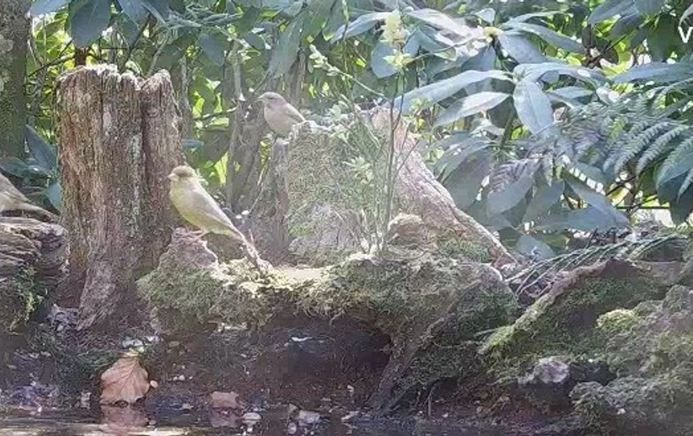 Ook hier bij de vijver buitelen tjiftjaf, groenling en fitis regelmatig door het beeld. Zelfs met het handboek vogeldeterminatie kom ik er persoonlijk niet uit. De ene is vergeleken met de andere gestroomlijnder en langvleugeliger, en dan zijn er wel kleurverschillen, zeker in de pootjes, maar weer niet van grote betekenis, en ook de oogstrepen en de gezichtsuitdrukkingen (?!) hebben fijne nuanceverschilletjes… kortom… het is groengeel, het zit zelden lang genoeg in beeld om op staart- of vleugellengte beoordeeld te kunnen worden - en het zingt.