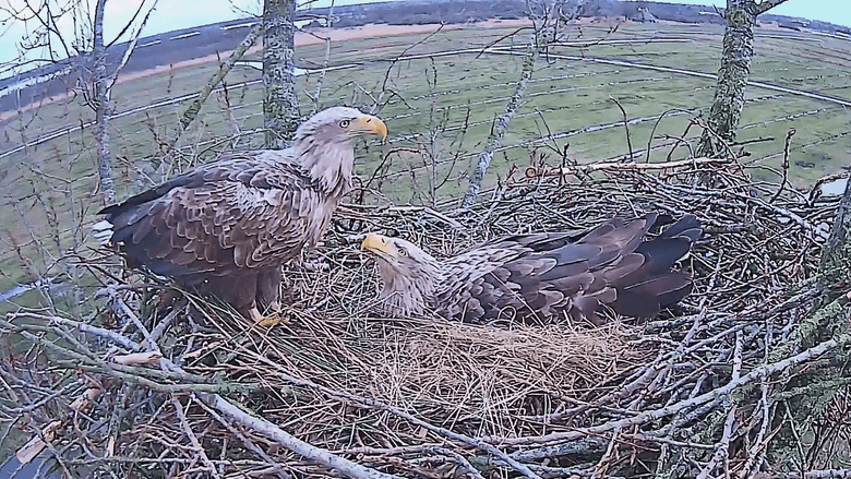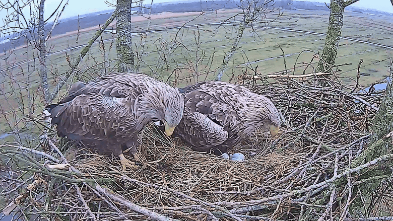 Als alle eieren bevrucht zijn en er zich in de komende vijf weken geen extreme (weer)situaties voordoen, dan mogen we verwachten dat er vanaf ca. 18 april a.s. zeearend kuikens uit hun ei gaan kruipen.