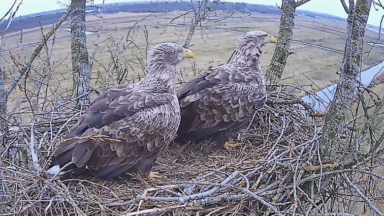 Of dit, laat ik zeggen ‘speelnest’, vroeger of later in gebruik wordt genomen als een nieuwe kraamkamer? Wie het weet, mag het zeggen. Er is echter maar één webcam en die staat gericht op het ons bekende, aloude en vertrouwde nest. Dus …, hopen dat de zeearenden niet van plan zijn om nog in dit seizoen te gaan verhuizen!