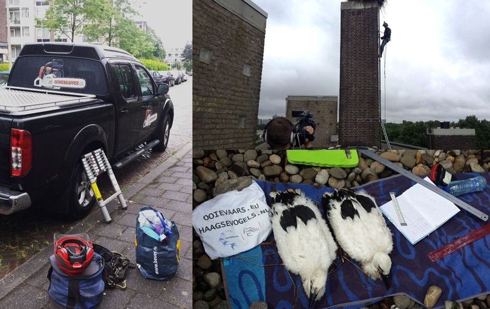 - het laatste nest ligt op een hoge toren, daar kunnen we niet bij. Dankzij de eerder gelegde contacten, kunnen we gebruik maken van een oefening met hoogwerker door de brandweer. Het pand staat op nominatie voor sloop, een uitgelezen kans om de gemeente en projectontwikkelaar te attenderen op het nest en me in te zetten voor bescherming ervan.