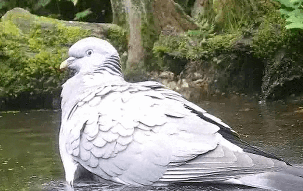 Dus... houtduiven: wat vind jij er van? In ieder geval komen ze met enige regelmaat voor onze vijver-webcam. Als ze er weer staan, kijk ze dan maar eens diep in de kraaloogjes.