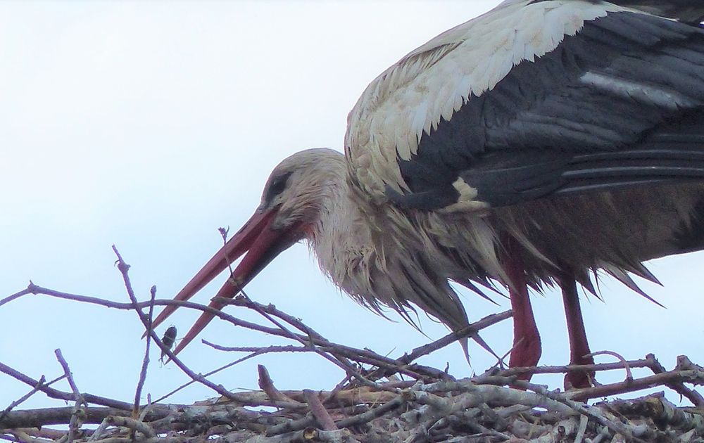 De nattigheid van het braken en de (dunne) poep van de jongen moet ook worden bestreden. Anders zouden de kuuks binnen de kortste keren in de viezigheid zitten. Het nest wordt dus 'opgeschud' en vaak aangevuld met zacht materiaal als droog gras en riet. Met veel zorg wordt het tussen de kleintjes gestopt.