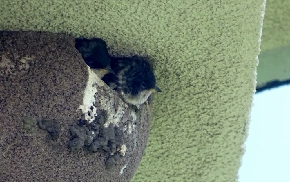 Gelukkig gaat het goed met deze Huiszwaluw kolonie. Het lijkt alsnof er een nieuw wit veertje in het nest ligt. Betekent dit dat er opnieuw gebroed gaat worden? Ik hoop het.