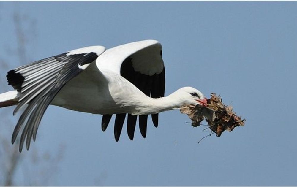 Een ooievaarsnest is nooit 'af'. Het hele seizoen zal het paar bezig blijven met onderhoudswerkzaamheden en het aanbrengen van nieuw nestmateriaal. Met lege handen aankomen en dan een beetje gaan staan niksen, dat is er niet bij.