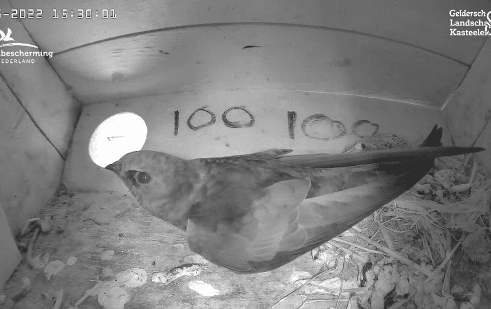 Eindelijk is het zo ver, de gierzwaluwen zijn weer volop in het land. En ook in de nestkast die we hier op Beleef de Lente kunnen volgen is de eerste Gierzwaluw vandaag teruggekeerd.