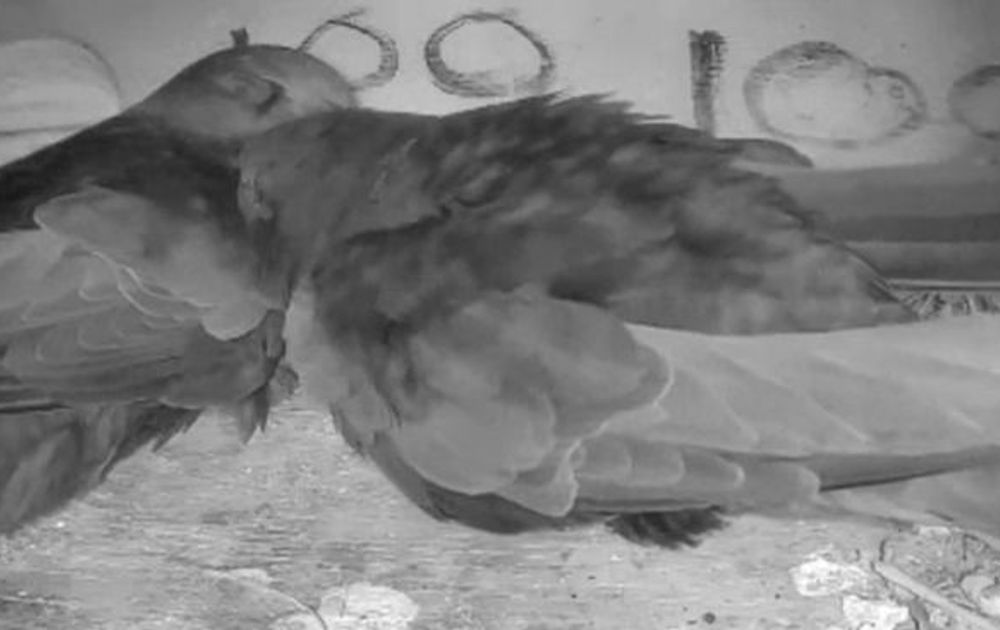 Het paren gebeurt over het algemeen in de lucht waarbij de man ook zijn klauwtjes gebruikt om zich aan het vrouwtje vast te klampen. Als deze redenen om de pootjes te gebruiken niet aan de orde zijn, zitten de klauwtjes fijn warm teruggetrokken tussen de buikveren. Bij mijn weten gebeuren de paringen altijd in de lucht. Daarom dacht ik dat de kans vrijwel 0% was dat we dit voor de camera zouden gaan zien. Tòch is meermaals op beelden uit andere gierzwaluwkasten waargenomen dat paringen ook op het nest plaatsvinden! Wellicht gaan we dat dus tòch zien!