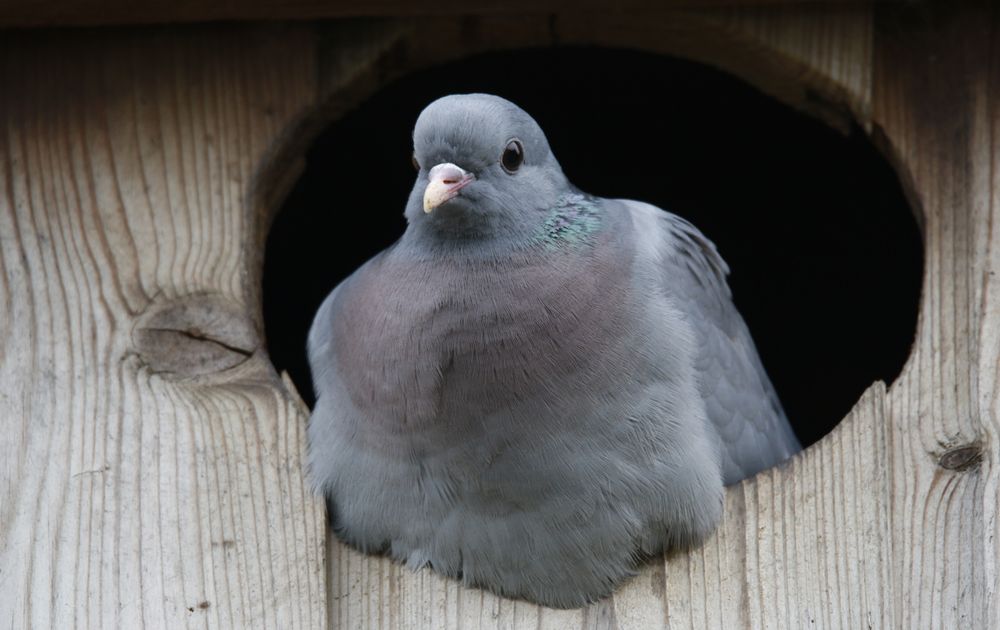 Met de holenduiven is het anders gesteld. Die kunnen meerdere keren per jaar een nest maken en beginnen zonder lang te morren opnieuw als het broedsel mislukt. Drie nesten per jaar is geen uitzondering en zelfs vier of vijf komt voor. Ze kunnen tot diep in de zomer doorgaan. Ze hebben nog alle tijd van de wereld dus. En zo gedragen ze zich ook. Wat minstens zo belangrijk is: ze zijn enorm geduldig en vasthoudend. Gedonder met kauwen is voor hen dagelijkse kost - part of life zogezegd - en ze weten dat ze uiteindelijk aan het langste eindje trekken. Ze beginnen pas als ze denken dat de kauwen het kortste stukje vasthebben.