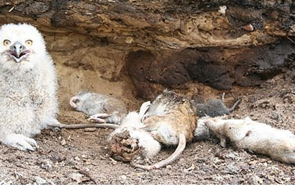 prooien, verzameld tijdens onze onderzoeken naar de Oehoe. Zowel uit braakballen