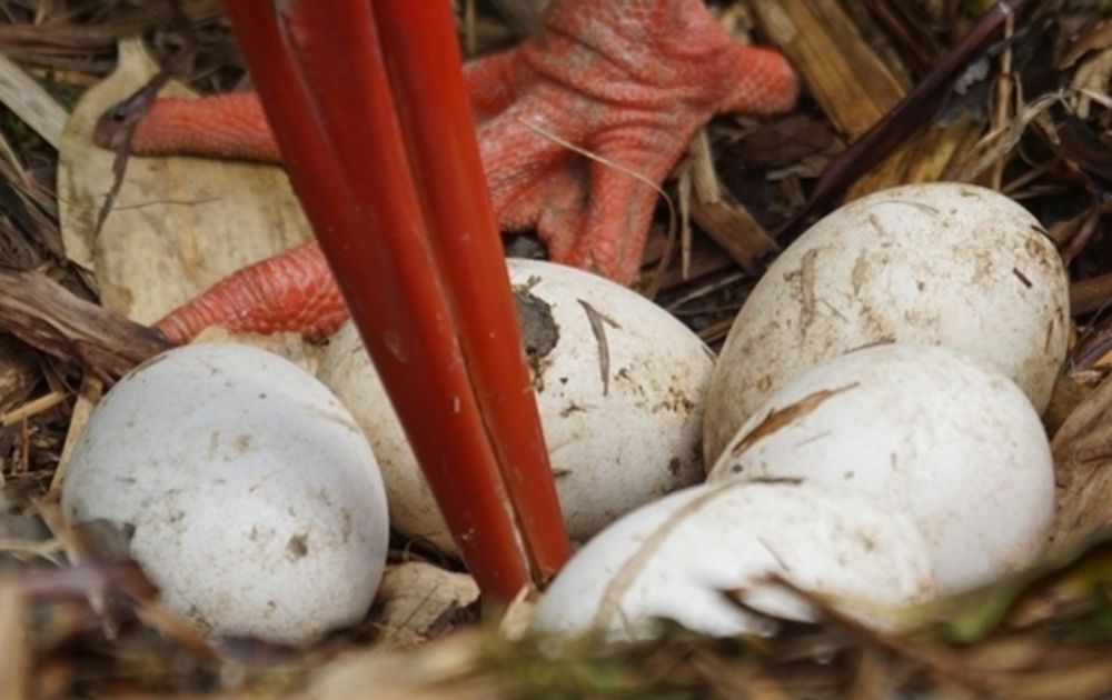 In de filmpjes van de afgelopen week is te zien hoe de temperatuur wordt geregeld door met de snavel te prikken in het materiaal in de nestkom. Verder krijgen we een mooie presentatie van hoe de eieren voorzichtig worden gekeerd, zodat alle kanten optimaal worden verwarmd.