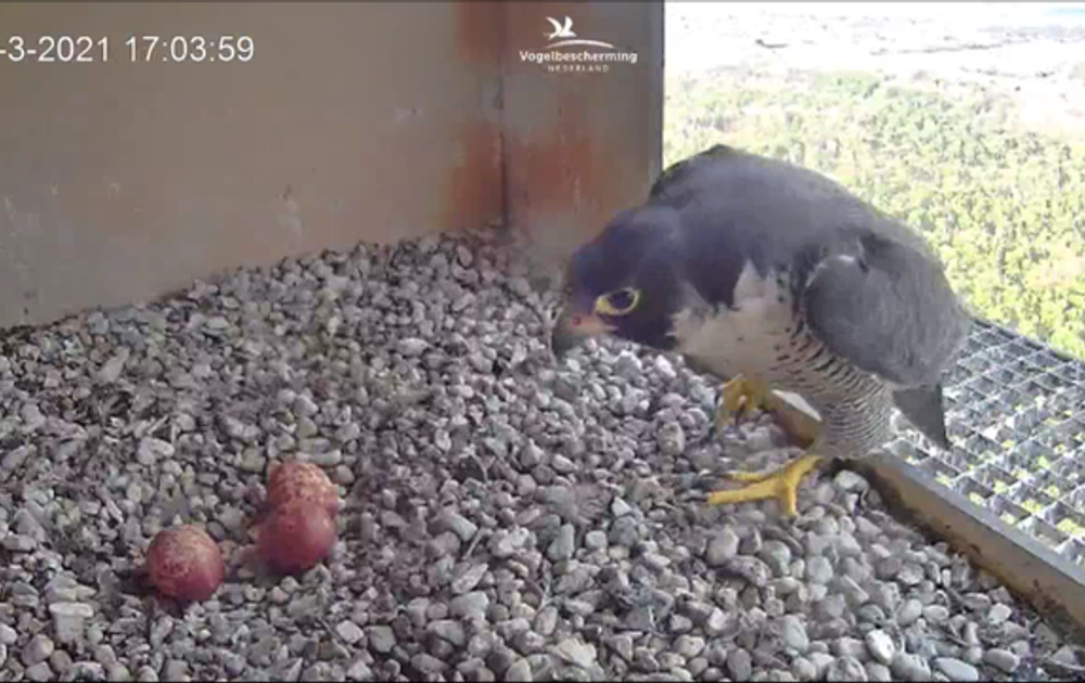 harder worden. Het slechtvalkkuiken beweegt ook steeds meer. Dit is ook