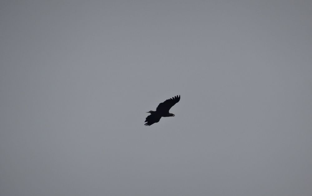 Afgelopen week namen we een kijkje vanaf de grond bij het zeearendennest. Onder het nest waren de brandnetels, bramen en klimop wit van de zeearendstront. Tot op ruim zes meter van de nestboom was het te vinden en er lag dusdanig veel dat we vermoeden dat het wel eens om twee jongen zou kunnen gaan. Kort posten nabij de nestboom, turend door verrekijker en telescoop, zagen we een paar keer een jong bewegen. Een dikke bruine kop, een dikke bruine kont met nog wel wat dons tussen de veren. Een tweede jong liet zich niet zien, maar vanaf de grond blijft dat lastig te zien, zeker als de jongen niet staan maar liggen. Het jong in de Alde Feanen is zo’n beetje het jongste zeearendjong in Nederland, want de anderen zitten strak in de veren en een enkele vliegt al. Het is alleen toch nog even afwachten of het er eentje of twee zijn. Dat zien we vermoedelijk de komende tijd wel, want zo snel als de jonge havik gevlogen is, zo lang duurt het bij de zeearend eer de jongen uitvliegen.