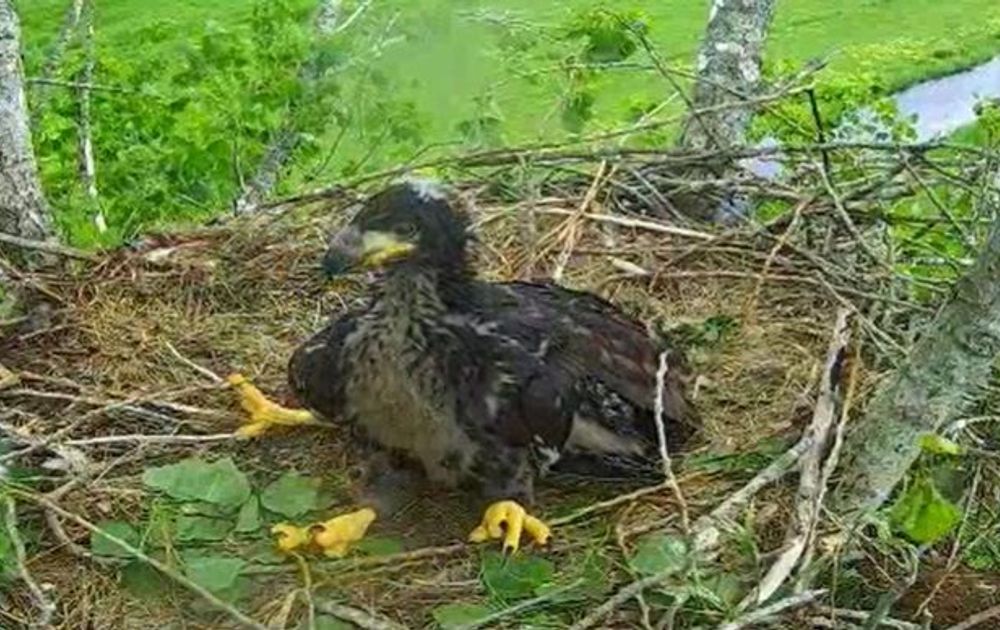 De veren van de ''kleine'' zeearendjes zijn al flink in de groei! Sommige veren zullen al uitgegroeid zijn, zoals de contourveren (die bedekken vooral de romp, borst en kop) waar andere veren zoals hand-, arm- en staartpennen nog volop in de groei zijn. Het lijkt van een afstandje wel blauw van kleur te zijn.