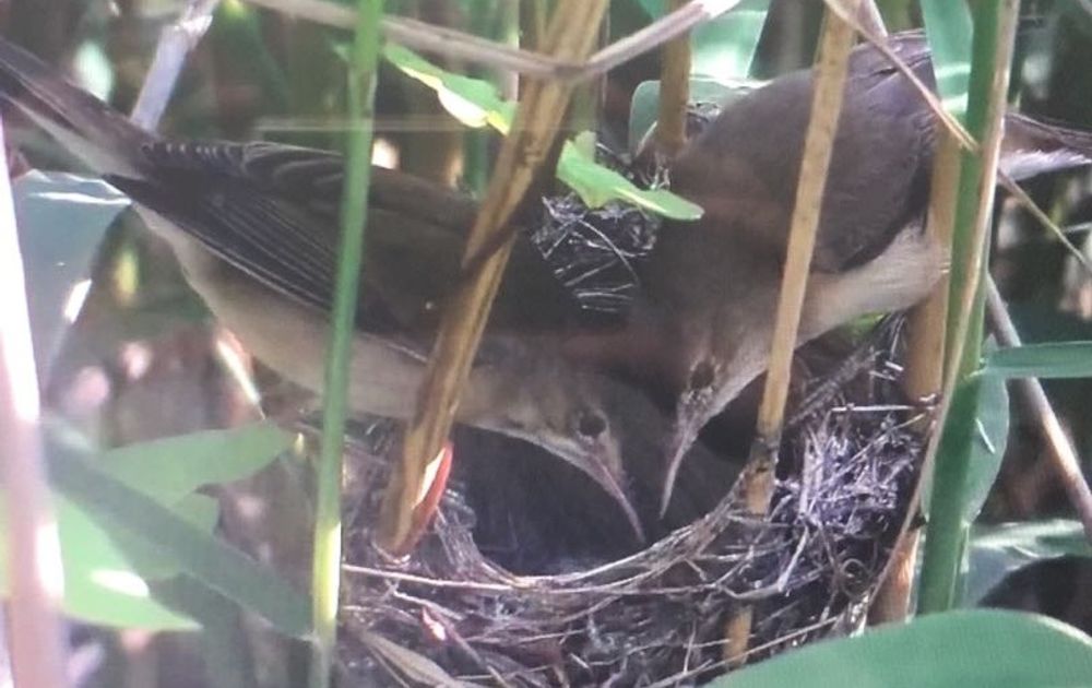 So far, so good. Het lijkt goed te gaan met het tweede nestje van ‘ons’ paartje kleine karekieten. Na succesvolle bouw van dit nieuwe nestje en een succesvolle eileg, nu ook succesvolle uitkomst van in ieder geval twee eitjes. De verwachting is dat, als het eitje vruchtbaar was, het derde en ook het vierde jonkie ook snel uit z’n ei zullen kruipen. Nu begint voor pa en ma het echte werk: het constant aanvoeren van voldoende voedsel om de jongen succesvol groot te brengen.