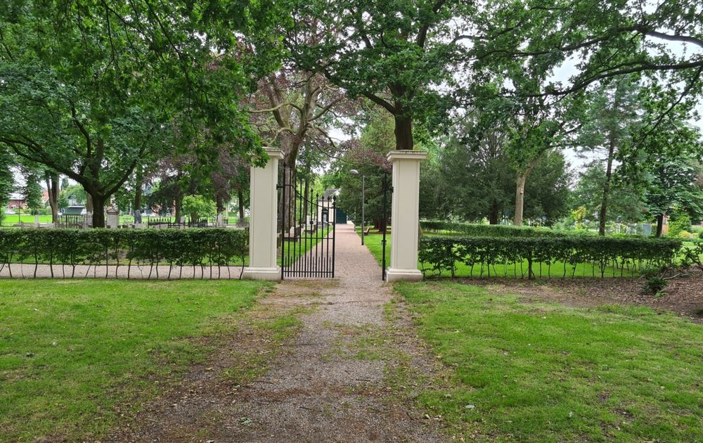 Voordat u nu denkt wat zijn dat voor lugubere gasten die op zaterdagmorgen voordat ze aan het veldwerk beginnen een kerkhof bezoeken: de begraafplaats is al sinds eind 1908 niet meer in gebruik en het fraaie smeedijzeren hek staat altijd open voor bezoek. Het lange, rechte pad ligt op de doorgaande route naar de bakker. Hij is maar kort in gebruik geweest (vanaf 1829, 80 jaar), maar de hele toenmalige Winterswijkse jetset ligt er begraven: burgemeesters, textielbaronnen, notarissen en scholtenboeren.