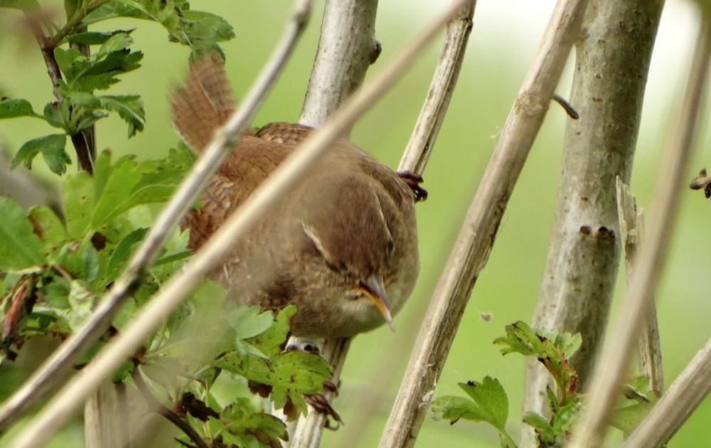 Ja als er één vogel is die valt in de categorie ‘opgewonden standje’, dan is het de winterkoning. Heb je hem wel eens zien zingen? Ik bedoel echt zien. Dan zit ‘ie in een struikje bijna recht voor je neus met zijn hele harde, heldere zang en dat staartje, kort en strak overeind. Een druktemaker eersteklas. Waar haalt zo’n kleintje de energie vandaan om dit de hele dag vol te houden?